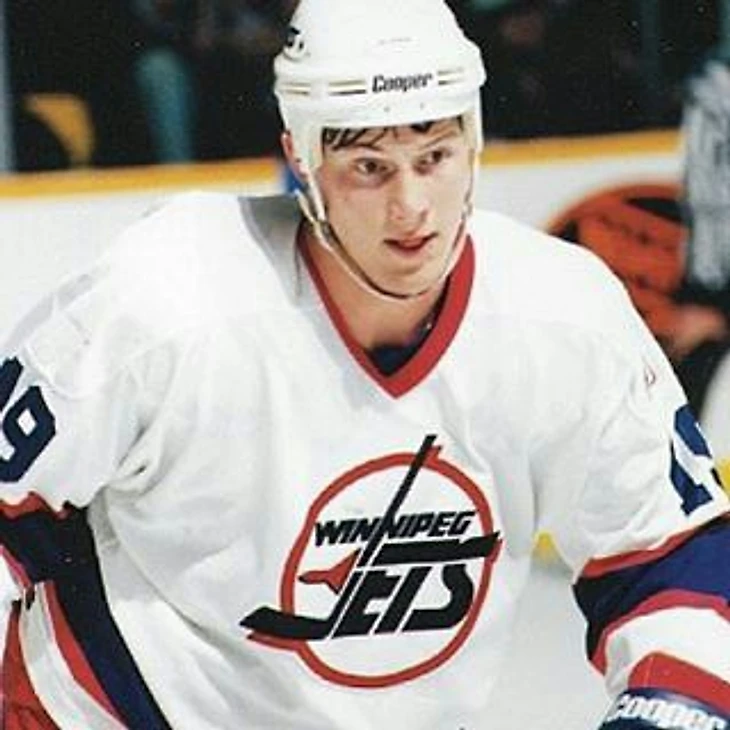 Шейн Доун в матче «Виннипега». Сезон 1995/96. В единственном сезоне до переезда «Джетс» в активе форварда 17 набранных очков в 74 играх.