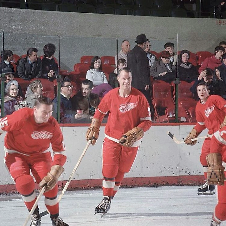 Горди Хоу с партнерами на раскатке перед матчем «Детройта». 60-е.