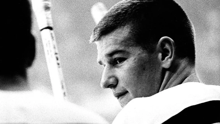 Бобби Орр на скамейке «Бостона» во время своего первого матча в НХЛ.