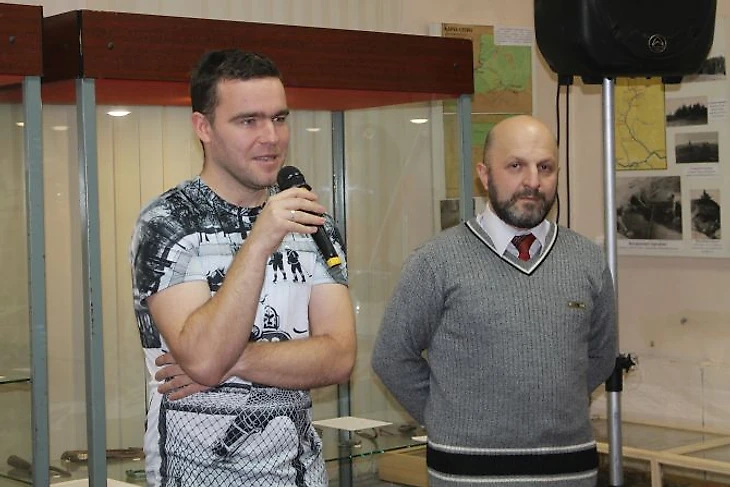 Каток залили, и в 15 часов все собрались в музее для торжественного открытия. Все усилия по организации оказались не зря. Кроме собственно фотографий, на выставке были настольный хоккей, образцы формы разных лет, торт «ХК Ветлуга» и многие другие хоккейные артефакты. Сразу вспомнили, что где-то на видеокассетах есть старые матчи ХК «Ветлуга» еще 1990-х годов, и надо бы их оцифровать. Команда пришла в игровых свитерах, а форвард Антон Романов – в полном обмундировании: такова была идея.