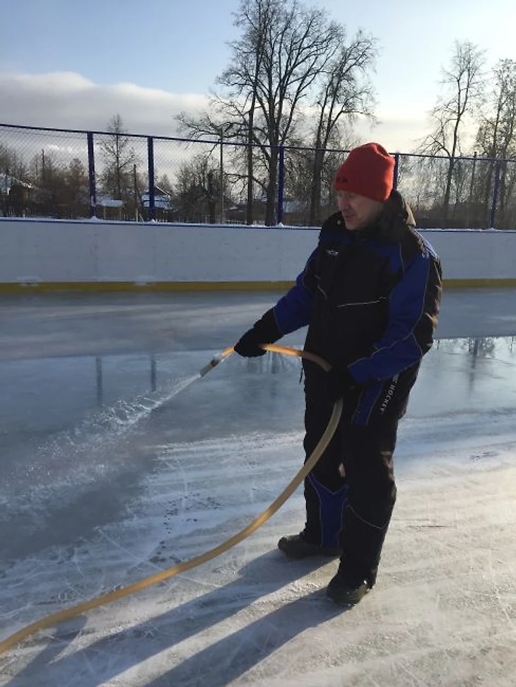 В день открытия выставки напряжение достигло апогея. Пока все бегали, главный тренер (играющий) Евгений Соловьев невозмутимо заливал каток. В Ветлуге в тот день было минус 12, поэтому выставка выставкой, а тренировки – по расписанию. Каток, напомню, новый – после первой волны популярности команды администрация района помогла со строительством.