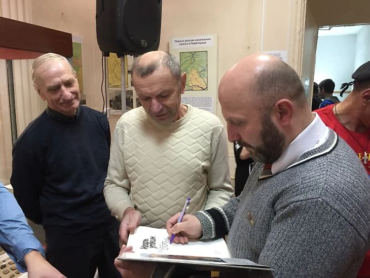 После торжественной церемонии, речей, фотосессий и автографов Владимир Песня дал всем желающим мастер-класс. Он проходил в зале, где обычно находится экспозиция про первую мировую войну. Об этом напоминал плакат «Жертвуйте раненым воинам». Плакат был донельзя актуален: в начале этого сезона привычная проблема ХК «Ветлуга» с нехваткой хоккеистов обострилась как никогда ранее. Лучший форвард Илья Виноградов сейчас работает в Сочи; Александр Белов и Алексей Лебедев учатся и работают в Нижнем, хотя грозят скоро приехать и всех победить. Одного из талантливых молодых игроков скоро, видимо, заберут в армию. Евгению Соловьеву и Александру Смирнову не впервой, но, конечно, это изматывает. Вроде как во всем мире о Ветлуге узнали, теперь надо бы выигрывать, а как выигрывать, когда в составе в основном необстрелянная молодежь.