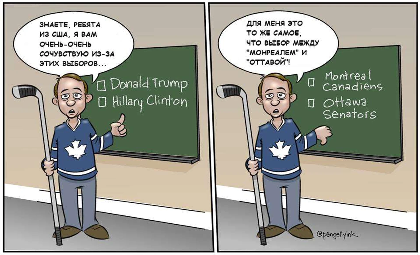 Тема президентских выборов активно обсуждалась и в Канаде, в том числе там, где раньше играл Фил.