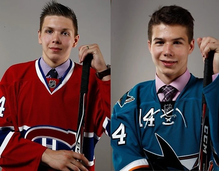 И Никита и Коля блестяще смотрелись в преддрафтовый год. Щербак выступая за середняка WHL "Саскатун", в воротах которого когда-то блистал нынешний "китаец" Андрей Макаров, просто рвал соперников, набрав в 65 играх 78 очков. После 14 очков в ступинском "Капитане" в прошедшем сезоне, это казалось просто фантастическим. Особенно учитывая репутацию Западной лиги, как наиболее жесткой и контактной из системы CHL. Голдобин же феерил в лиге Онтарио, за "Сарнию", воспитавшую для НХЛ Якупова и Гальченюка. Причем феерил в славянской тройке с тогда еще совсем юным Никитой Коростелевым и крепким белорусом Владом Кодолой, набрав в 67 матчах впечатляющие 94 очка. Не мудрено, что такая статистика в итоге потянула на первый раунд драфта. И Щербак и Голдобин до сих пор вспоминают церемонию драфта, как самое яркое событие в своей карьере. И то верно, пока не случилось ничего более яркого. Их выбрали друг за другом. Под 26 и 27 номером. Напомним, что 26 выбор достался "Монреалю", путем классического нхловского распределения, как финалисту Восточной Конференции. Примечательно, что 27 выбор должен был принадлежать финалисту Запада "Чикаго", но незадолго до этого "Ястребы" поменялись пиками с "Сан-Хосе". Так в итоге Щербак оказался в "Монреале", а Голдобин в "Сан-Хосе".