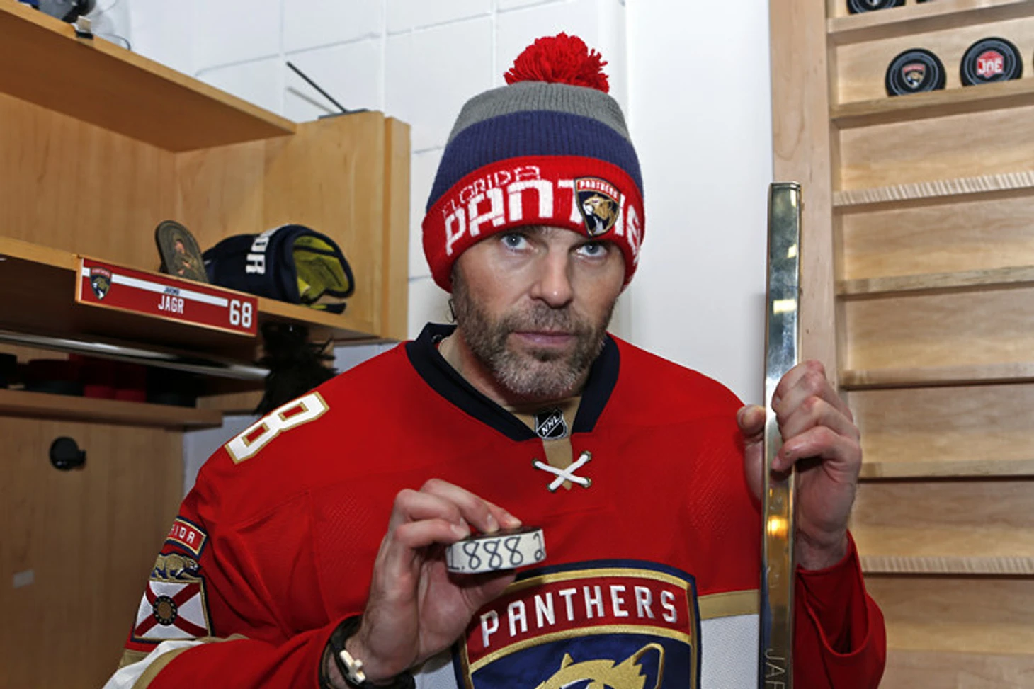 Теперь у Ягра стало 1888 (755+1133) очков в 1663 матчах в НХЛ. Торжественное событие отметили прямо по ходу игры, рекордсмену вручили золотую клюшку.