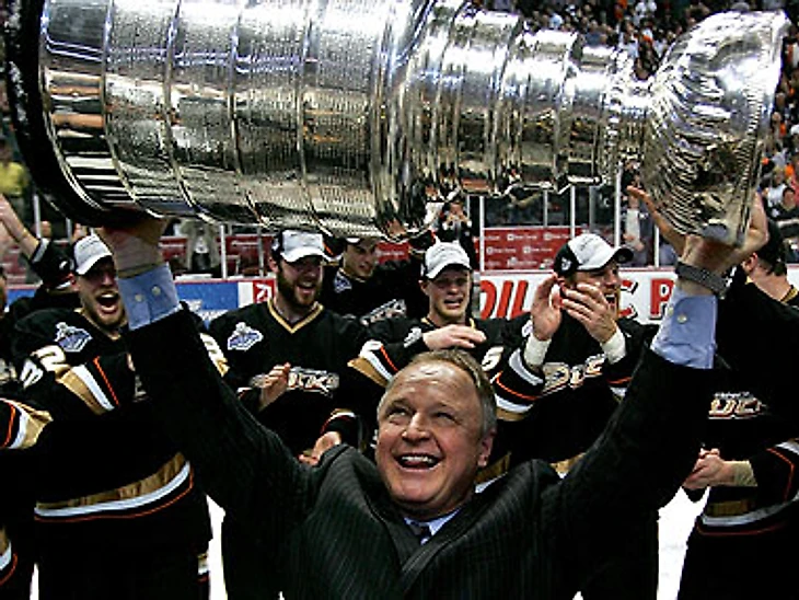 Рэнди Карлайл возглавлял Анахайм на протяжении 6 с лишним лет и за это время привёл клуб к первому и пока последнему Кубку Стэнли (2007). Затем в связи с неважными результатами был отправлен в отставку и на его место пришёл Брюс Будро. Будро повторить достижение Карлайла не сумел и запомнился разве что рекордом всея НХЛ по количеству проигранных 7-матчевых серий за карьеру - 7 (из 8)! Этим летом Будро попросили на выход и на его место поставили (а точнее вернули) Карлайла.