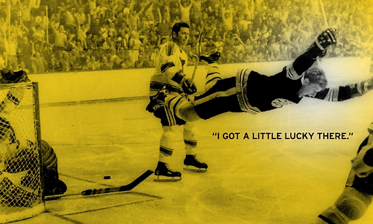Ну на ладно, вернемся в Америку... В той серии, Бостон вел 3-0 с разницей 16-4, но последний матч выдался тяжелым и дошел до овертайма. А в овертайме Бобби и забил свой победный гол и совершил свой ставший знаменитым прыжок...
