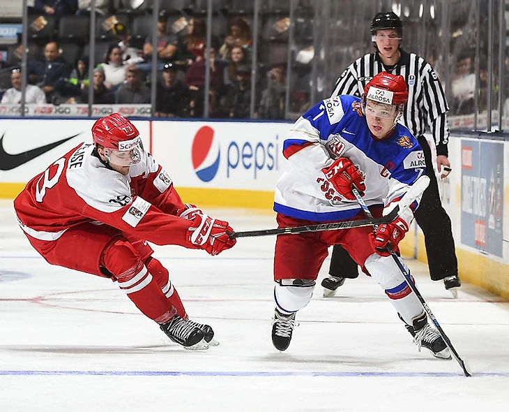 Для начала о главном: ни одного шанса у Дании не было. После игры со словаками я ввел пункт «Брагин не подготовился к игре», и это переводилось как «не учел особенностей соперника», что, в общем, разумно — еще бы мы под Словакию подстраивались. Вот и на команду Олафа Эллера россияне не особо оглядывались с технической точки зрения. Но очень много поработали в смысле настроя и морали. Команда выглядела в меру агрессивно и как-то по-деловому: много катания, высокая плотность, никаких свободных мест, провалов и прокатов. Ровно тот минимум, не позволяющий раскрыться сопернику, который на самом деле, намного ниже классом.