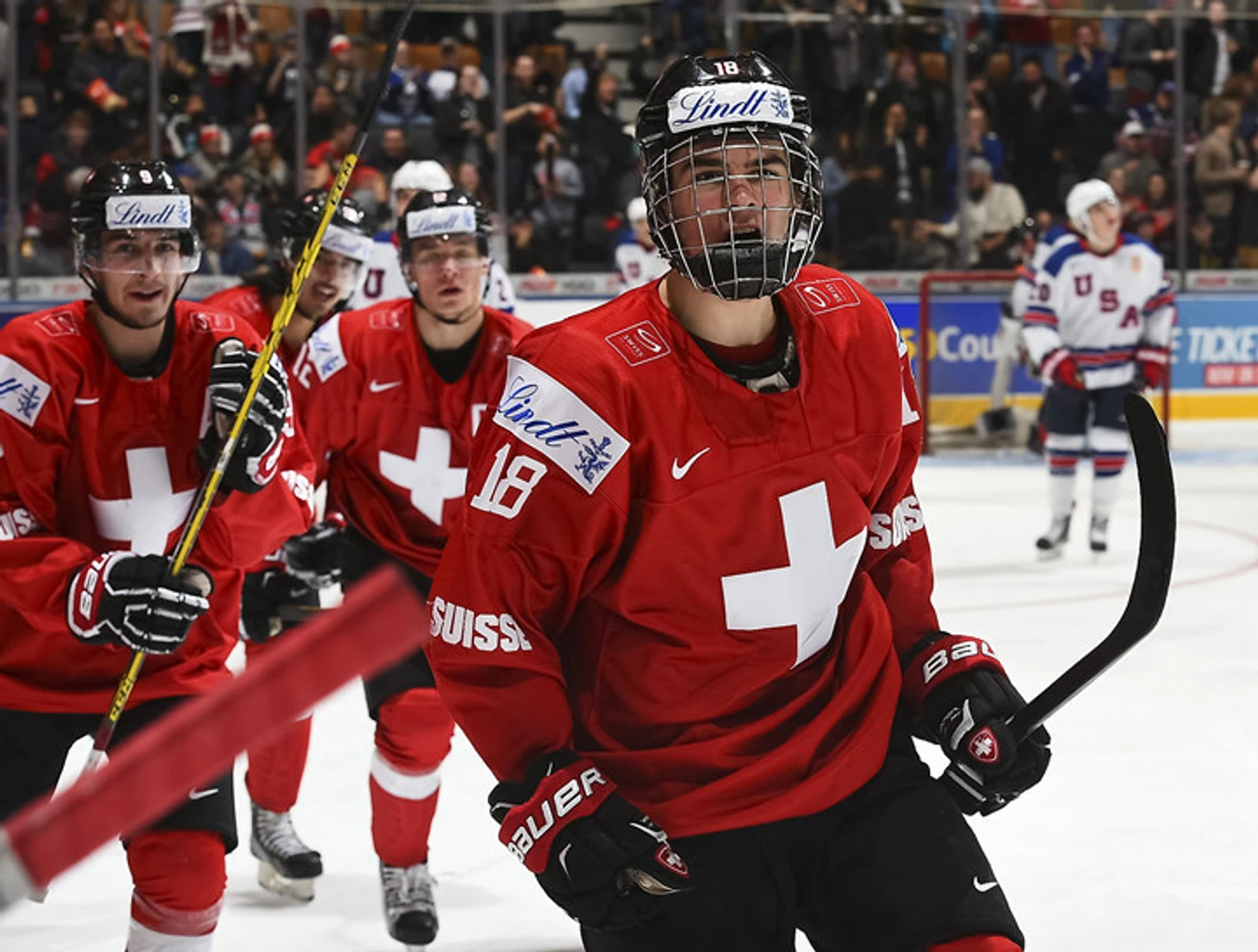 Обученная, симпатичная, без комплексов, команда Швейцарии вышла играть с американцами и быстро выяснила, что, конечно, уступает им почти во всем, но — ненамного. Пошла игра: в своей зоне швейцарцы организованы достаточно, чтобы не развалиться, а выдумки американцам не хватает не только на этом турнире. Нико Хишир сделал бесцеремонный дубль, но своих снова выручил здоровяк Гринуэй. Единственный четвертьфинал, в котором интрига сохранялась до самой сирены, Вольвенд даже снимал вратаря.