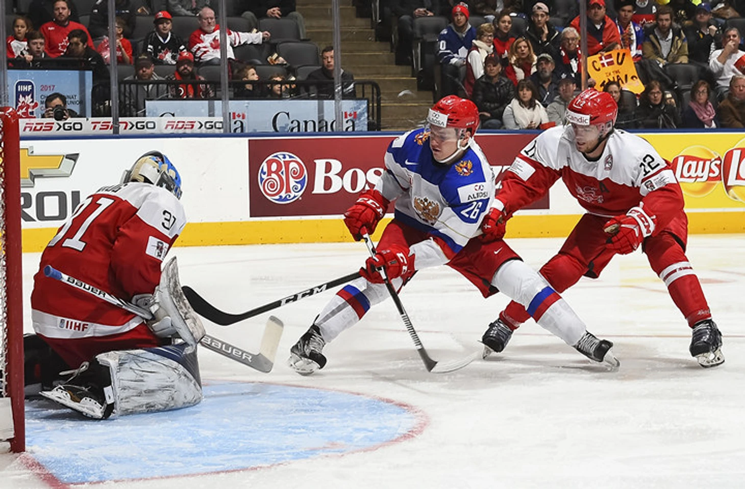 Чехи вышли творить сенсацию. Они весь турнир играли в самый стабильный, взрослый, тактический хоккей (пару раз даже заигрывались, но им сошло с рук) и у них талантливая команда – в общем, этот набор называется «Удивим хозяев». Хозяева и сами удивились: в Монреале на них не собралось полной арены, и первый период они провели примерно в прострации. Пошло очень не по канадскому плану: Давиду Каше забить помог судья. Первый перерыв — счет 1:0 в пользу потомков Ягра.