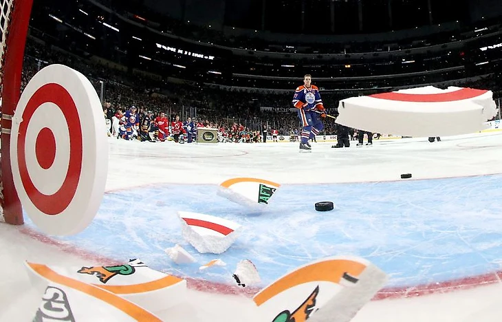 Этот конкурс есть и в НХЛ, и в КХЛ. В Уфе неделю назад победил Игорь Ожиганов, а в Лос-Анджелесе все ставили на Ши Уэбера из Монреаля. Здено Хара, которому принадлежит рекорд, в этом году вызван на Матч звёзд не был, а без него никто не смог бросить хотя бы за 105 миль в час (Хара бросил однажды со скоростью 108,3 миль/час). Дважды удивил Патрик Лайне, который в обеих попытках перевалил за сотню миль в час. Он шёл в лидерах до выступления Овечкина и Уэбера. Игрок Вашингтона в первой попытке вообще не попал по воротам, а во второй не смог одолеть Лайне. Первая же попытка защитника Монреаля оказалась лучше, чем у финна: 102, 8 миль/час. Во второй раз Ши ограничился 99-ю милями в час. Похоже, Харе нужно ещё раз поучаствовать в этом конкурсе перед завершением карьеры.