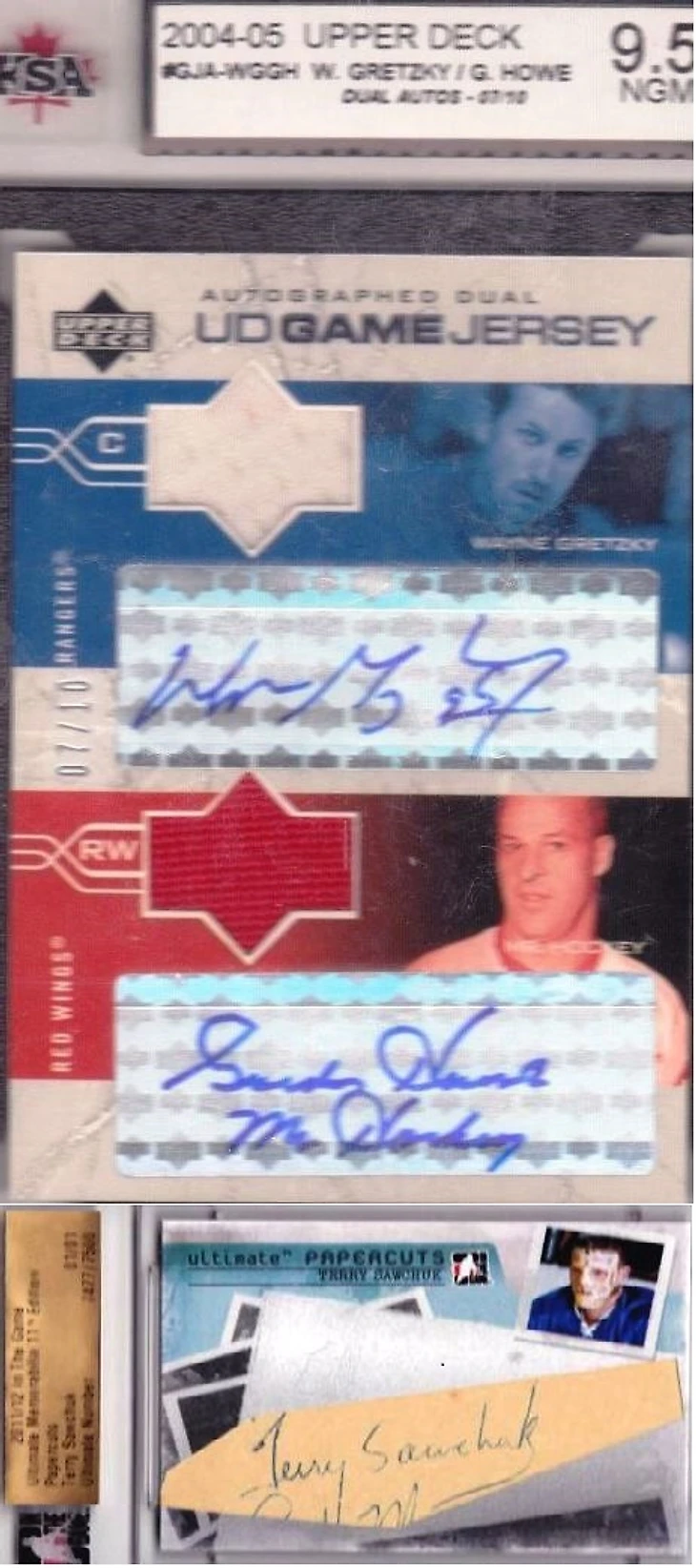 1) А лидирует карта с автографами двух величайших игроков в истории НХЛ – Уэйна Грецки и Горди Хоу. Коллекция Series 1 сезона 2004-05. Тираж 10 экз. Цена карты 1520$.