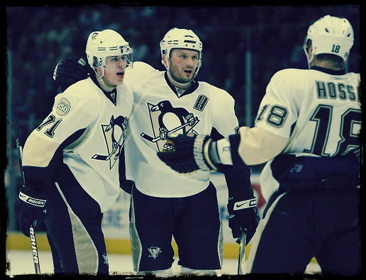 Тройку открывает Евгений Малкин, один из двух хоккеистов этого списка, который идет по графику «больше очка за матч». Кто второй такой же маг и кудесник клюшки и шайбы, вы наверно уже догадались. Двукратный обладатель Кубка Стэнли набрал 129 очков в 124 матчах. Наверно, многим памятен тот самый плей-офф 2009 года, когда в Джино вселился дьявол. То, что он творил а льду в том розыгрыше, не иначе как тотальным доминированием не назвать. 36 очков в 24 матчах, унижение и уничтожение Каролины в финале Конференции (4-0), где был и феноменальный гол с неудобной руки, и драматичный финал с Детройтом, оказавшийся первым, но не последним, победным финалом в карьере Малкина. Если бы Конн Смайт по итогам того сезона достался не ему, справедливость в этом мире была бы истреблена окончательно. Не грех и память освежить: