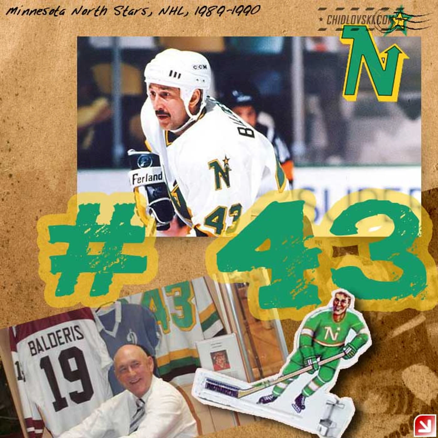 Балдерис был задрафтован Миннесотой, в которой прошла его не долгая карьера в НХЛ (26 игр и 9 очков).