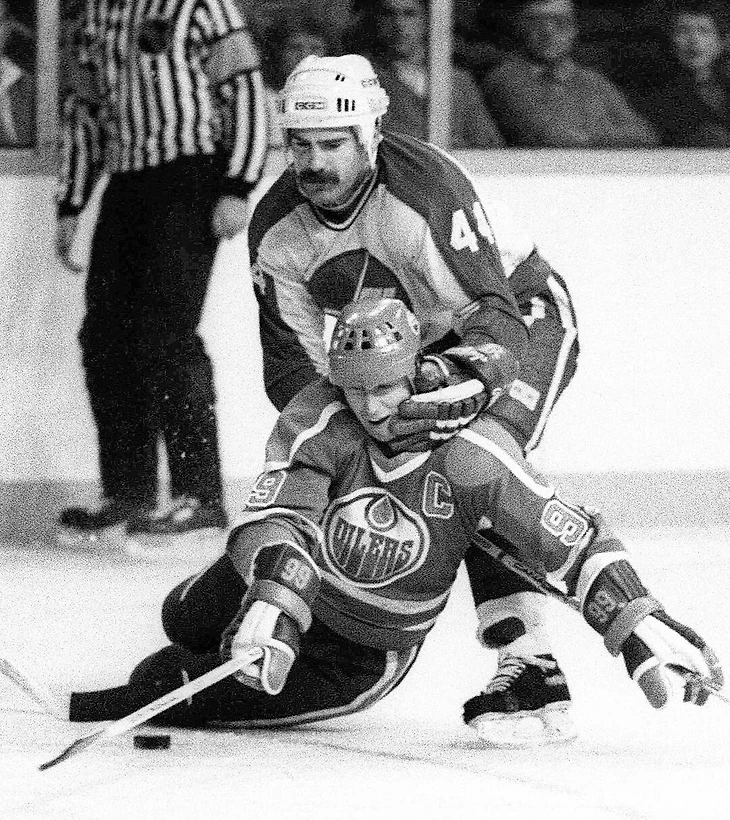 Уэйн Гретцки в борьбе с Дэйвом Бабичем.