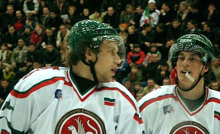 Дэни Хитли и Венсан Лекавалье в составе казанского Ак Барса во время локаута в НХЛ. 2004 год.