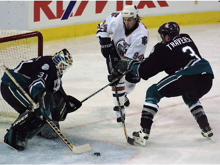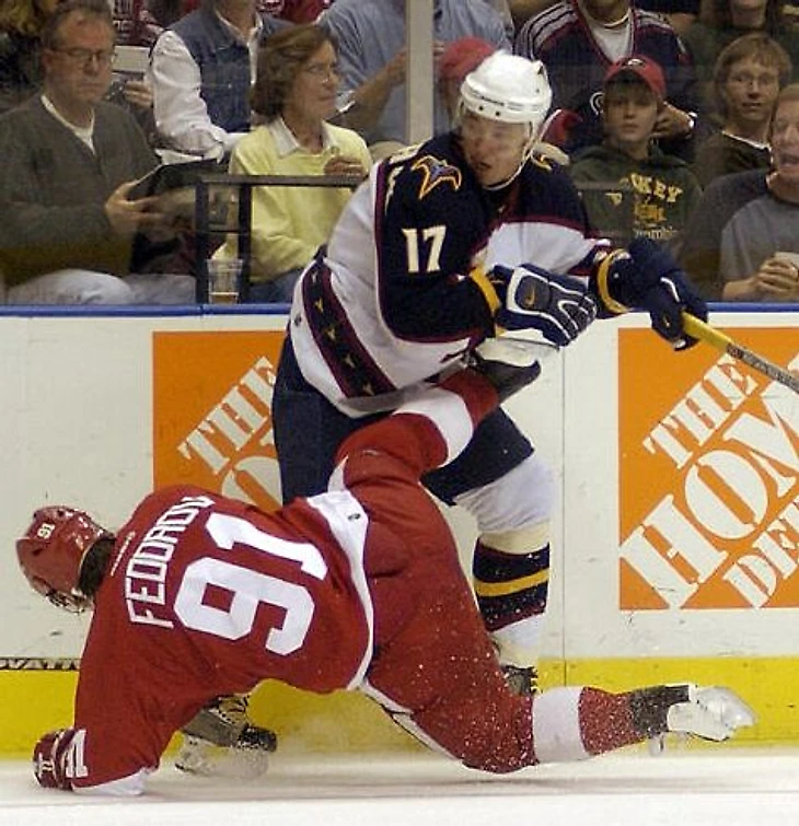 Сергей Фёдоров в борьбе с Ильей Ковальчуком. 15 февраля 2003 года.