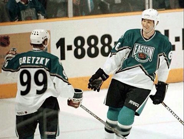 Уэйн Гретцки и Марио Лемье на Матче звезд НХЛ. 1997 год.