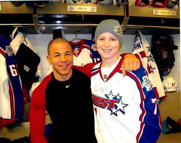 Маленький Мэттью Ткачак и Джером Игинла во время Матча звезд НХЛ. 2004 год.