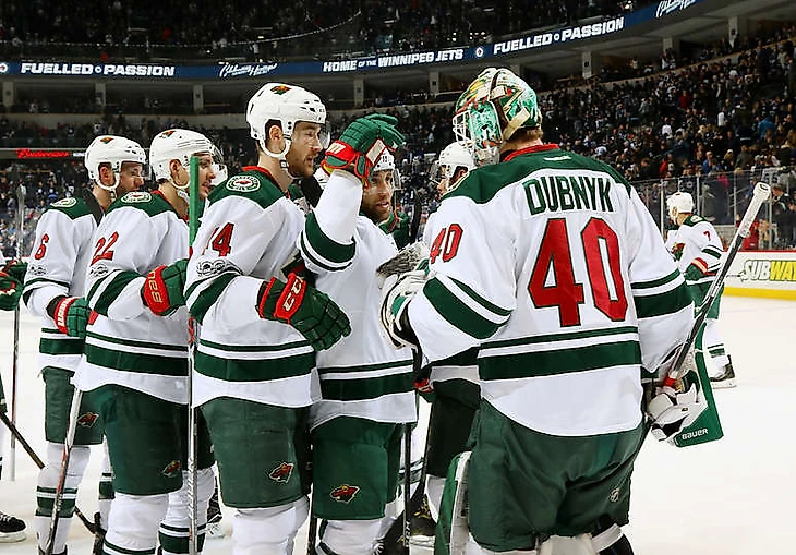 Заметно укрепившая ростер «Миннесота» выдала весёлое и сверхрезультативное начало недели. Перед матчем с «Кингс» Брюсу Будро с помощниками пришлось перекраивать состав из-за Зака Паризе и Джейсон Поминвилла, которые заболели свинкой. По ходу самой игры «дикари» четырежды отыгрывались и одержали победу в овертайме благодаря 20-й шайбе Микаэля Гранлунда в сезоне. Двое бывших хоккеистов «Аризоны» Мартин Ханзал и Райан Уайт дебютировали в составе нового клуба. И если Ханзал ограничился унылым «минус 1», то Уайт, оказавшийся в тройке с Эриком Стаалом и Нино Нидеррайтером, за свои неполные 10 минут забросил шайбу и отдал голевую передачу на швейцарского нападающего.