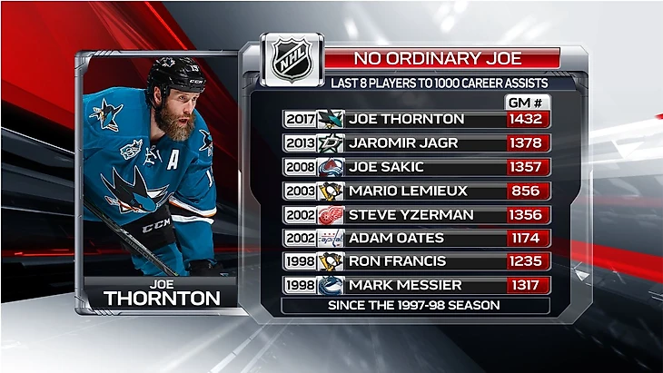 Джо Торнтон сделал 1000-ю передачу в НХЛ