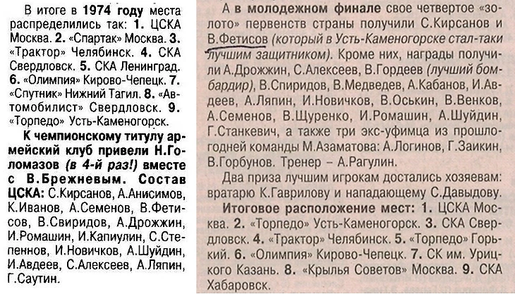 Победители первенства СССР 1974 и 1975 годов Источник: