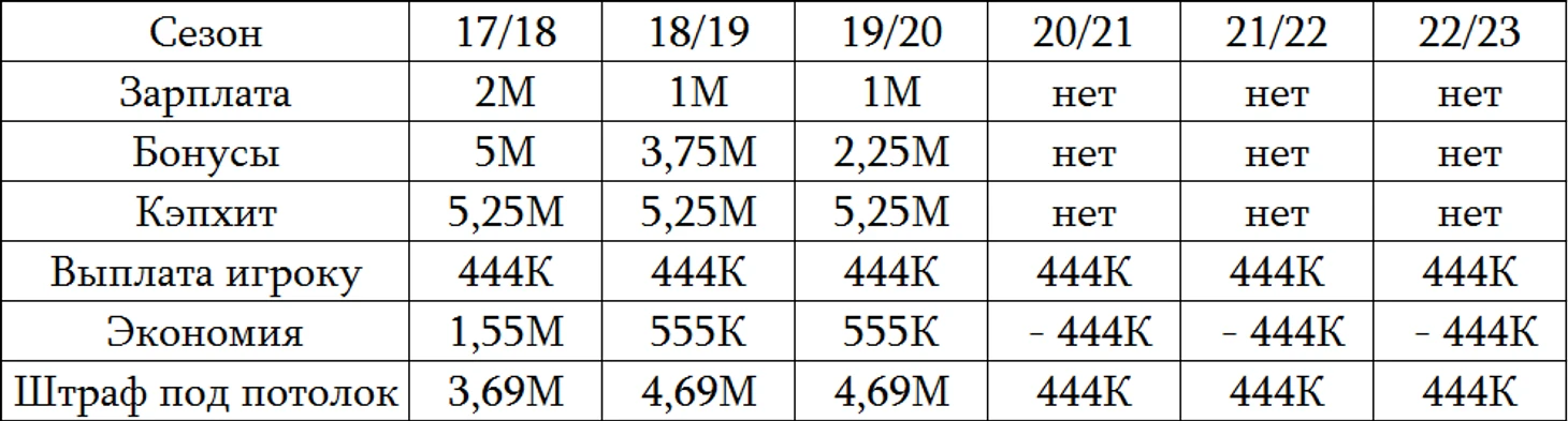 Хотя в последний год контракта Бенн будет получать 6 млн, под потолком все равно будет стоять 9,5 млн.