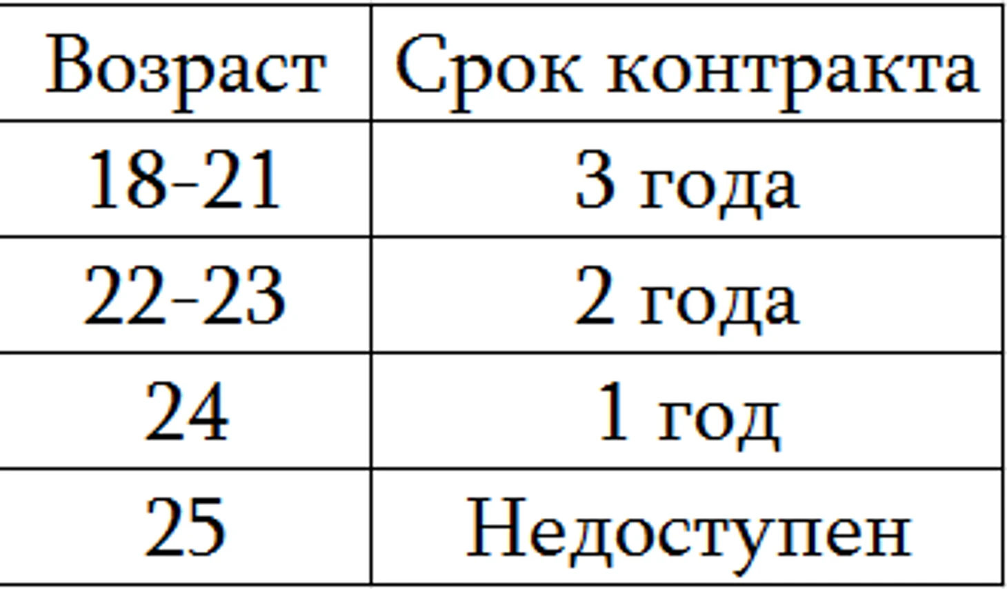 – Игроки 35 лет и старше, которые подписывают контракт на 1 год.