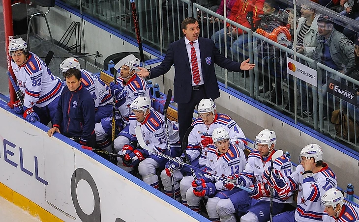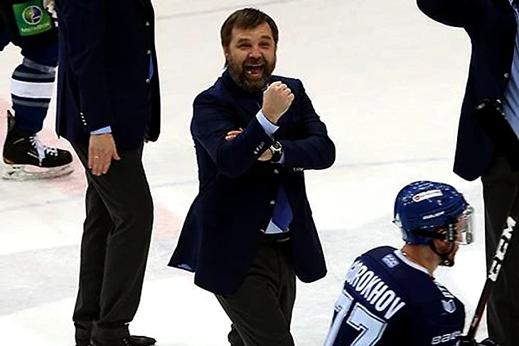 (На фото тренер Динамо Москва, Олег Знарок, нашел общий язык с болельщиками СКА.)
