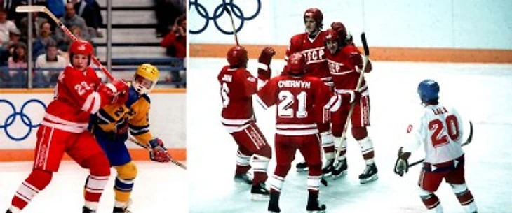 Второй гол у рижан на 59-й минуте и при счете 1:4 забил нынешний главный тренер СКА и сборной России воспитанник челябинского хоккея Олег Знарок (на снимке справа в верхнем ряду; в центре — воспитанник свердловского хоккея Николай Варянов).
