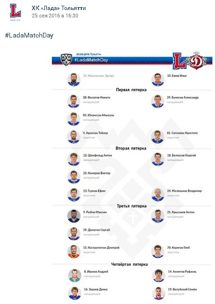 - Вот такая портянка с составом появлялась в группе перед каждым матчем в течение всего сезона. Скриншоты с сайта КХЛ, немного доработанные в редакторе.