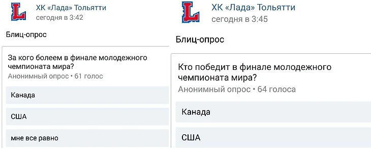- Просто два подряд опроса, выложенных в 4-м часу.