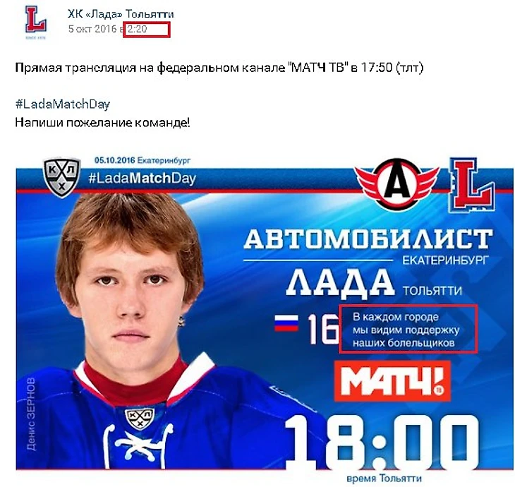 - Всё так, только вот слова Дениса Зернова, на самом деле ему не принадлежат, а являются фантазией автора картинки. К тому же, слова Дениса, который проводил первый сезон за "Ладу", никак не вяжутся с тем фактом, что матч в Екатеринбурге был первым в сезоне, на который был организован выезд болельщиков. Неувязочка.