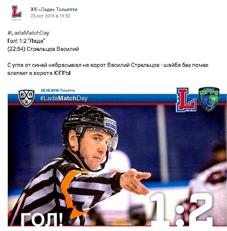 - "Лада" забивает гол, а на фото судья, который сигнализирует удаление. Всё-таки фото надо подбирать с умом.