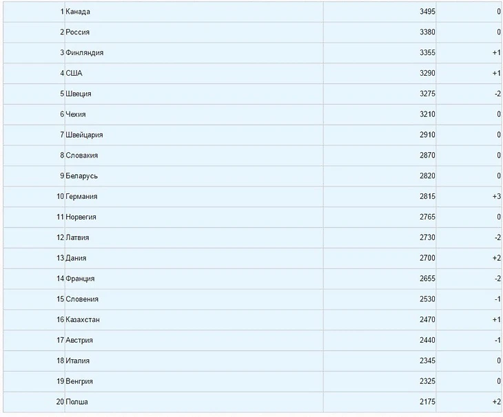 Но хотелось бы подробно поговорить о сборной России, точнее то, что от неё можно ожидать на сегодняшний день сборная России в рейтинге Международной федерации хоккея на льду (IIHF) занимает второе место.