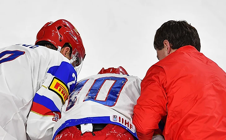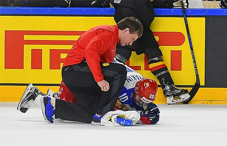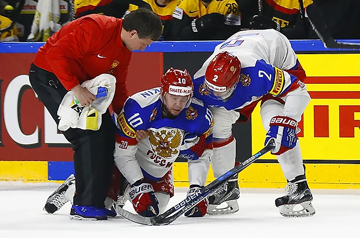 Уже на 14-й минуте матча с немецкой командой сборная России осталась без капитана – Сергей Мозякин получил травму после подсечки нападающего Парика Хагера. Мозякин отправился в раздевалку и больше не вернулся на лед. Позже стало известно, что российский игрок уехал в больницу на медобследование.