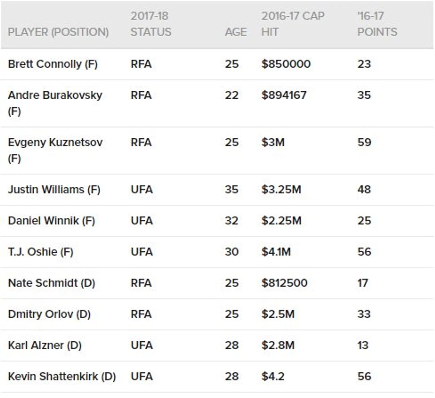 В составе «Кэпиталс» летом будет обилие свободных агентов, переговоры с которыми могут оказать решающее влияние на то, как будет выглядеть команда перед стартом сезона 2017/18.