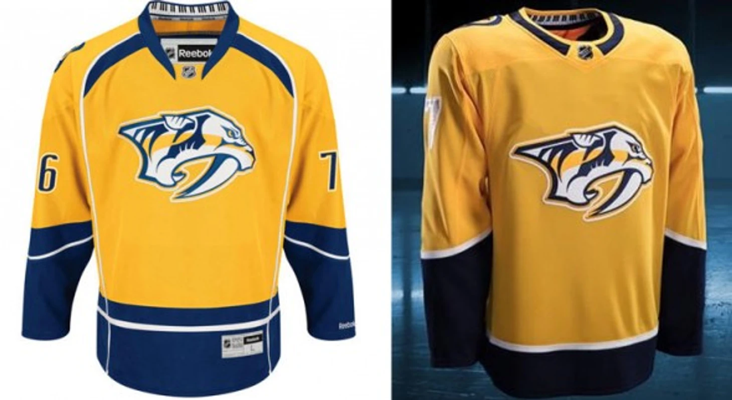 А вот действующий финалист Кубка Стэнли «Нэшвилл» максимально упростил дизайн, избавив свитер от разнообразных мелких деталей.