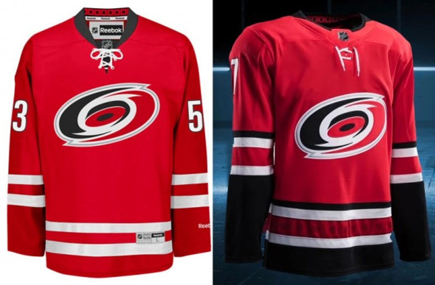 «Каролина» вернула на форму черный цвет, который пропал с основного свитера в 2013 году. Ожидаемый многими болельщиками «Харрикейнс» клеточный узор вернулся, но только в виде контура.