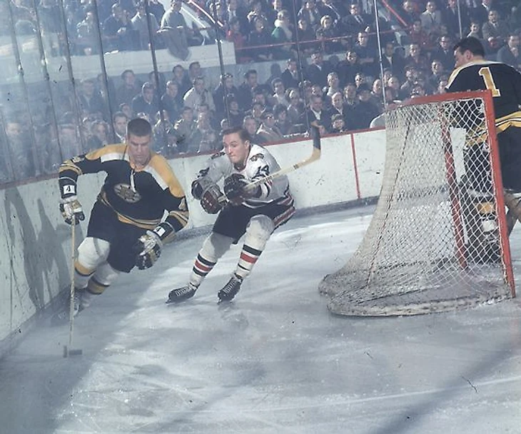 Бобби Орр в борьбе за воротами «Бостона». 1967 год.