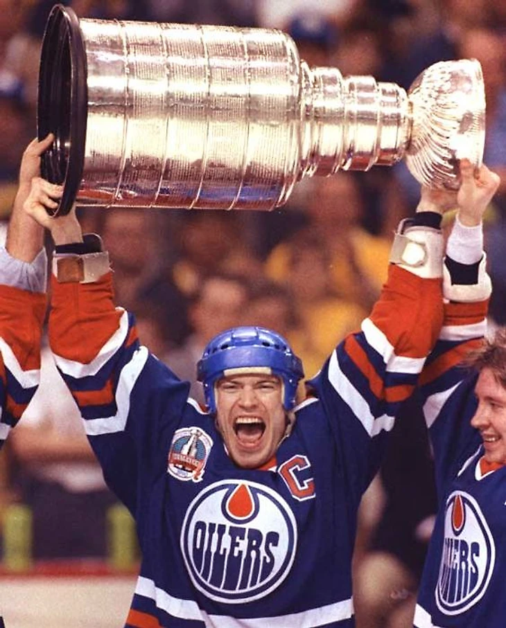 Марк Мессье поднимает над головой Кубок Стэнли. 1990 год.
