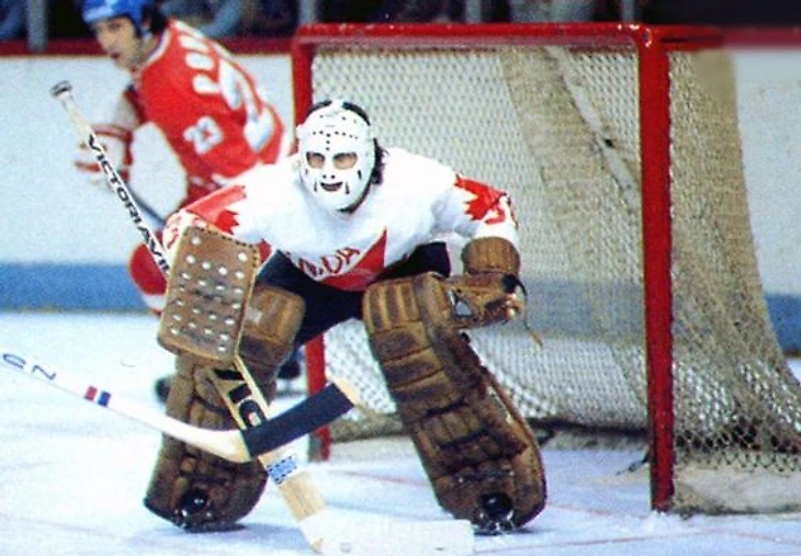 Роже Вашон в воротах сборной Канады в матче с Чехословакией на Кубке Канады. 1976 год.