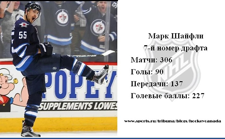Шайфли закрепился в «джетс» только на третий сезон после драфта, но дальше дела пошли только в гору (34 балла, 49 баллов, 61 балл, 82 балла) и уже сейчас он неоспоримый лидер команды и один из лучших центральных форвардов лиги.