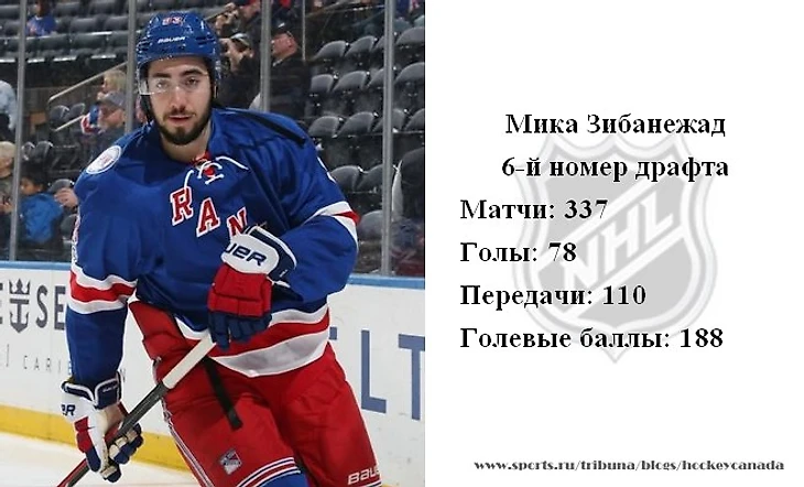 Швед сходу заиграл в НХЛ, если отбросить полугодовую ссылку в Европу в первый сезон после драфта. Его игра и результативность улучшалась от года к году в «Оттаве». После обмена в «Рейнджерс» Зибанежад заиграл еще ярче, но вмешались травмы, из-за которых форвард пропустил 26 матчей.