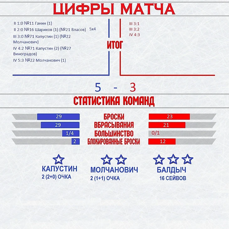 - Мы много раз играли с «Соколом», это серьёзный соперник. Примерно представляли, на что они способны. Их игра стала сильнее, это факт. Но и мы, я считаю, сыграли здорово. Количество бросков – не показатель. Считаю, что наши броски были более качественными.