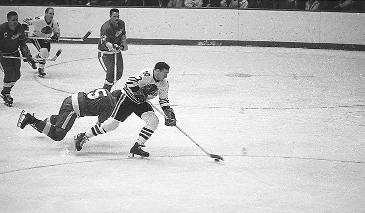 В том году меня и Бум-Бум Карона было не удержать. 16 января 1964 года нас «подняли» в «Чикаго». На тот момент мой отрыв в гонке бомбардиров был настолько велик, что даже пропустив 38 матчей, я все равно финишировал третьим с 26 голами, 54 передачами и 80 очками. Бум-Бум завершил сезон на первом месте с 77 голами, 48 передачами и 125 очками.