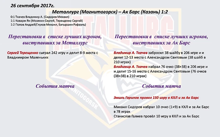 26.09.17г. Металлург Мг - Ак Барс 1:2