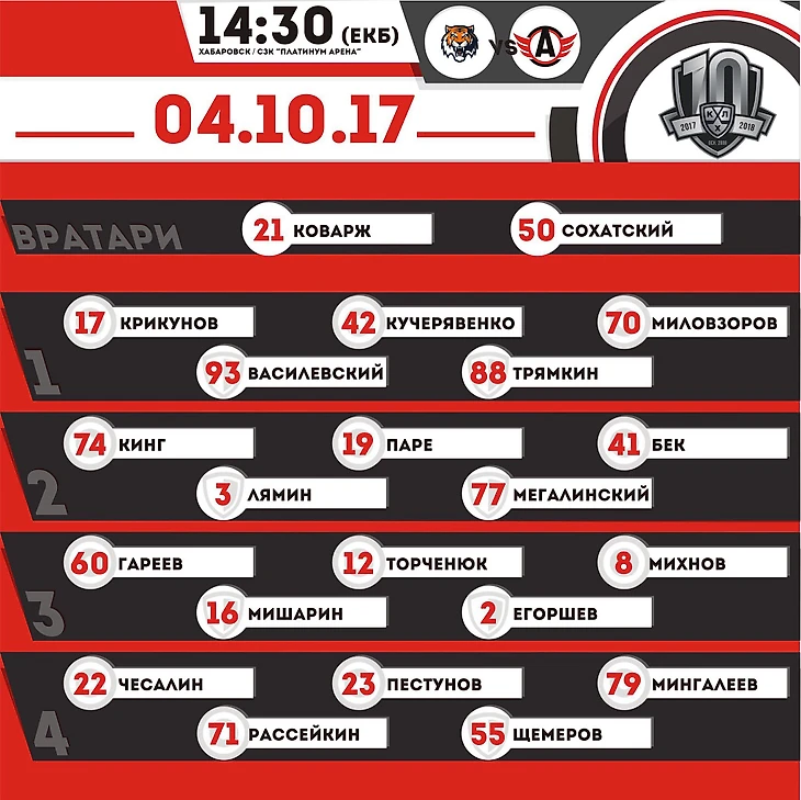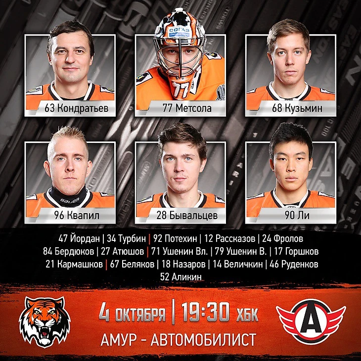 Вот такой состав Амура на игру, предсказуемо Квапил и Бывальцев в первом звене.