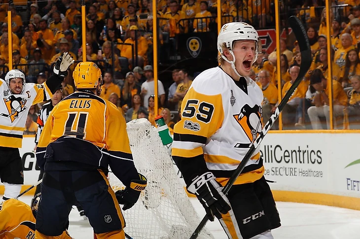 Он дебютирует только в ноябре, когда шумиха вокруг новых звезд угасла. «Питтсбург» в совершенно обычном матче уступил «Рейнджерс» (2-5), но болельщики стояли на ушах – 22-летний новичок делал дубль. Первый гол для него, словно 101 – он даже не поднимает руки полностью, его улыбка не разрывает уголки рта, он спокойно принимает поздравления от партнеров. А его родители и брат на трибунах сходят с ума – для него это первая шайба в НХЛ, забитая первым же броском.