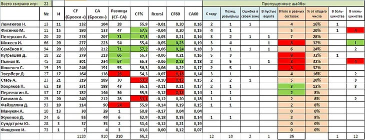 Решили вместе с бросковой статистикой подсчитать наши пропущенные шайбы.Были приятно удивлены нашей прозорливостью, но огорошены результатом: